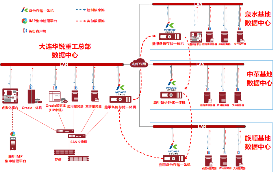 近日,鼎甲助力國(guó)家重機(jī)行業(yè)的大型重點(diǎn)骨干企業(yè)——大連華銳重工集團(tuán)完善災(zāi)備建設(shè),在集團(tuán)總部以及泉水、中革、旅順基地?cái)?shù)據(jù)中心四地分別部署鼎甲備份存儲(chǔ)一體機(jī),實(shí)現(xiàn)本地?cái)?shù)據(jù)的集中保護(hù)和環(huán)形異地的數(shù)據(jù)異地保護(hù),高效保障了大連華銳重要業(yè)務(wù)數(shù)據(jù)的備份安全。