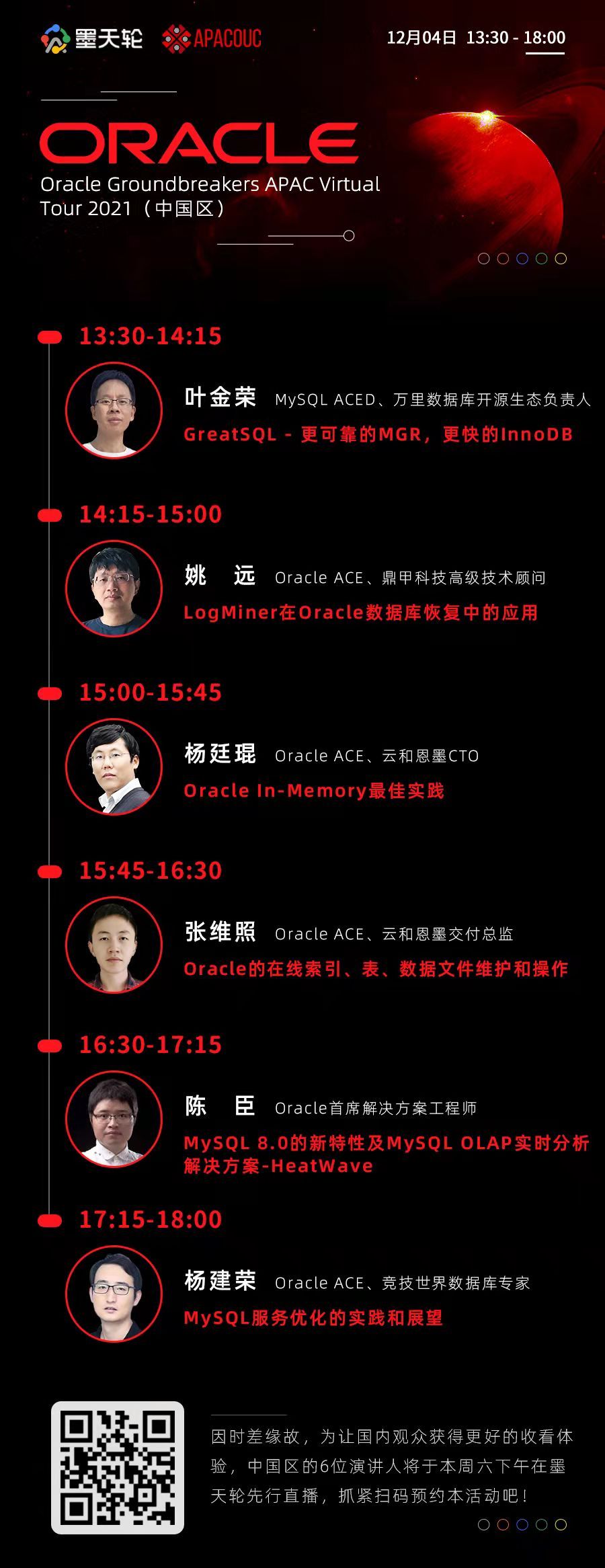 12月4日下午1:30-6:00,來自中國區的6位技術大咖與您相約Oracle Groundbreakers直播間。敬請期待!