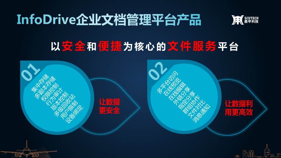 InfoDrive企業文檔管理平臺產品,是以安全和便捷為核心,為用戶打造出一個全新的文檔服務平臺。從存儲介質層次上采用多副本、多樣化的權限控制和行為審計、以及版本控制等功能點,實現數據安全存、安全用、安全訪問與分享。