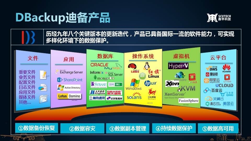 鼎甲核心產品DBackup歷經三次關鍵的版本迭代,強化對關鍵業務數據庫和云端數據的保護,推出大型機下的數據備份恢復、多租戶、D2C、D2D2C等功能模塊,并加強對應用與設備的適配。