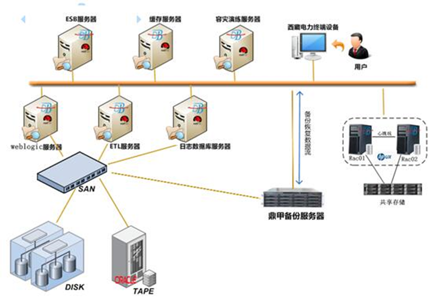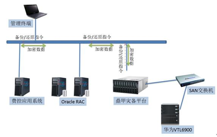 The disaster recovery platform is built based on Scutech’s backup products to provide data backup and recovery service for the whole backup system. Oracle RAC operating in HP-UX system will be directly backed up to tape library. The platform is also connected to Oracle SL150 tape library for long-time offline storage. Linx Rocky Secure Operating System will perform full backup for the operating system and backup for specific application files.