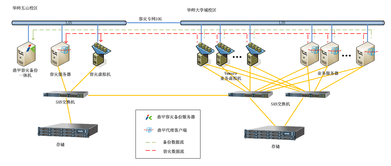 Therefore, in the disaster recovery project for SCNU, key points would include: a data backup and storage system, disaster recovery plan for business system and virtual operating system.