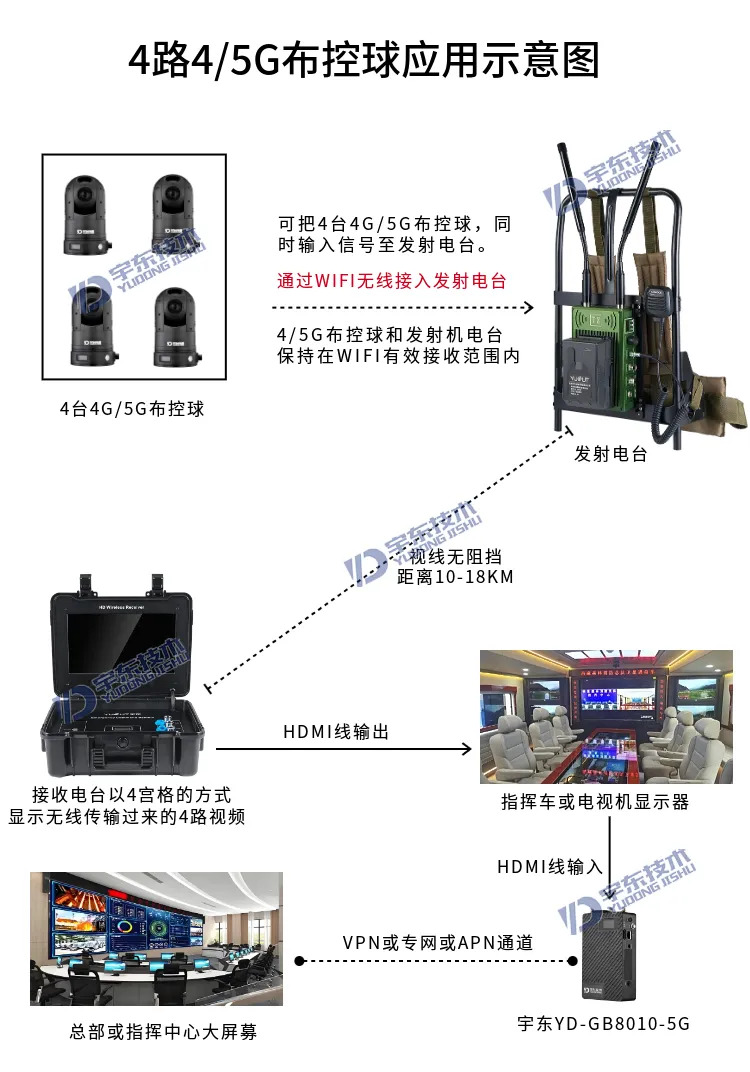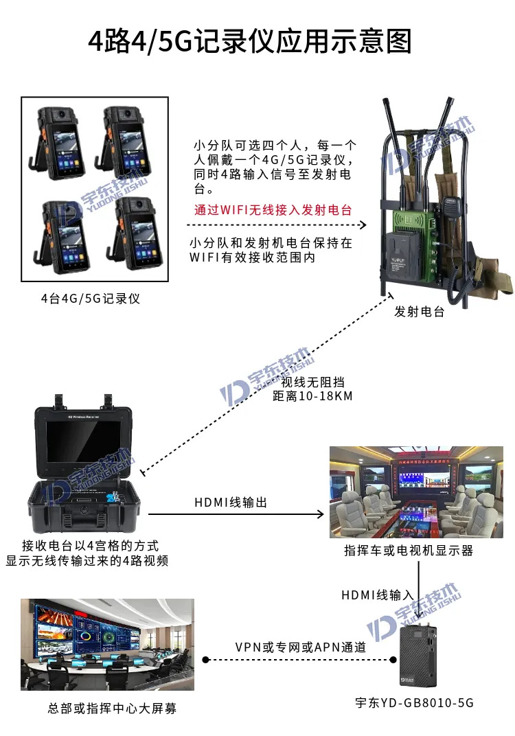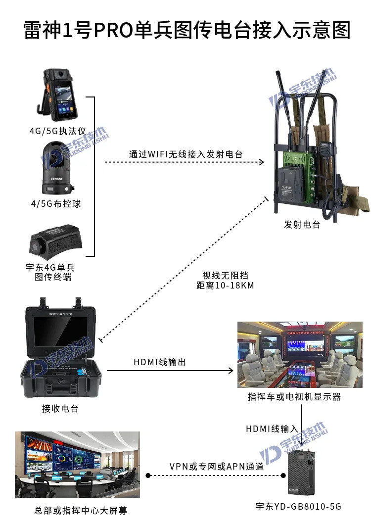 宇東技術(shù)雷神2號plus背負(fù)式高清無線圖傳電臺,就是把一線單兵的現(xiàn)場畫面實時的無線傳輸?shù)街笓]車/指揮部,并支持雙向語音對講,指揮員可以在指揮車/指揮部查看現(xiàn)場畫面,并可以和一線單兵人員對講通話,輕松完成指揮調(diào)度工作。